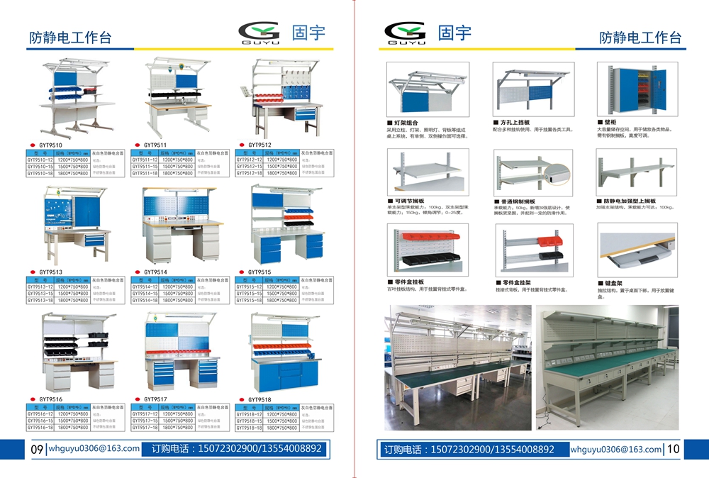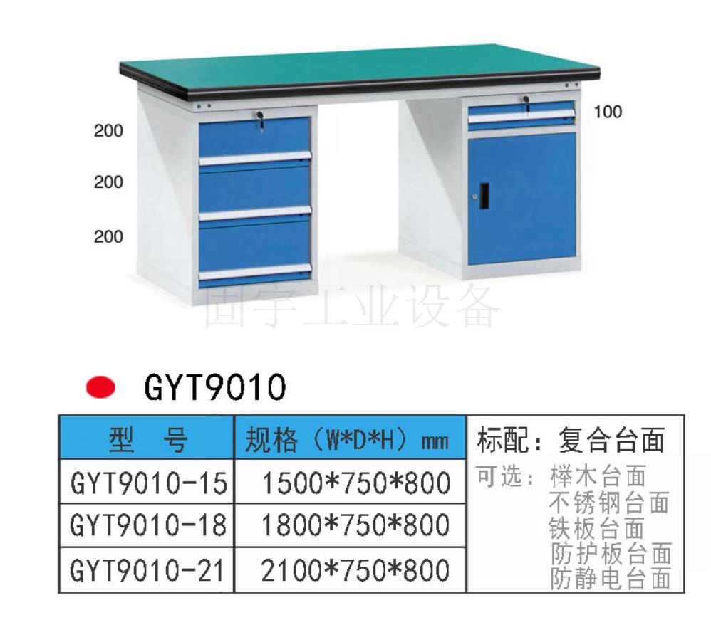工作臺采用優質冷扎板精工制作而成,堅固的工作桌框架,牢固平穩,可使工作桌承重1000kg;多種工作桌面選擇,可配合不同使用的要求;工具吊柜(箱),側柜(箱)燈架,調節腳杯,,外形美觀;層板,抽屜質量上乘,承重大,抽屜內可根據需要任意分隔;節約空間,適用性強。 范圍 工作臺適合于模具、鉗工、檢測、維修、組裝等各種不同應用場合,具有良好的耐腐蝕性,耐臟性,抗沖擊性和承重能力強。桌面經特殊處理,具有防腐、抗沖擊力強等特點,多種桌面的選擇,可配合不同的使用要求;所配置的抽屜、柜門方便使用者存儲工具;桌角上預留電源孔,方便安裝電源插座。工作臺(桌)分為輕型(可承重300公斤),中型和重型工作臺(桌)可承重1000公斤及特制的工作臺。可根據需要靈活地配置各種吊柜、單柜、雙柜等,可加裝掛板,電器板,燈頂板、調節腳杯,輪子,擱板等桌上部件,具有多種選擇,能夠滿足各種工位的需求。 工作臺材質采用優質冷軋鋼板,表面采用靜電噴涂處理而制成,堅固的工作桌框架,牢固平穩,可使工作桌臺面均勻承重達到1000kg。桌面有多種材質組成,適用于各行業辦公場所。可配合工具柜,吊柜,掛板,單開門柜使用。抽屜、承辦承重大,性能好,抽屜里可根據需求配置分隔條 工作臺分類:根據臺面的不同分為:櫸木工作臺、鋼板合成工作臺、防靜電工作臺、高分子工作臺;根據承重的不同分為:輕型工作臺、中型工作臺、承重型工作臺;根據功能的不同分為:多功能工作臺、帶吊柜工作臺等等。 臺面優勢 復合臺面特性臺面平整度高,撓曲度為0.8mm。表面2mm厚度為高分子材料,使臺面耐酸堿、耐磨、耐油。臺面采用高壓纖維板,使臺面更具有抗沖擊性。特別的圓弧桌角,不易受撞擊損壞。高強度塑膠包邊堅固、實用、不易損壞、不易脫落。櫸木桌面特性桌板使用櫸木與防水膠經加壓制造而成。表面光滑平整,美觀不易變型,耐油、耐熱、耐酸、耐堿,適合一般工廠作業與精密模具維修,儀器置放與檢測等用途。不銹鋼包面特性桌板使用高壓合成板,表面包1-2mm砂面不銹鋼板,以達美觀耐用。耐高溫、耐磨損、耐油、使用壽命長,為多功能桌板,適合一般工廠、食品業、研究室、電子廠無塵室使用。輕型工作臺可承重300kg-500KG防火板臺面特性輕巧、美觀、耐磨、防火。層壓板臺面特性工作桌面平整,變型小,強度高,抗沖擊性好。 標準顏色 產品顏色 標準的顏色可分為6種:淺藍色(RAL5015), 電腦灰(RAL7035), 機床綠(RAL6011),深藍色(RAL5017)。