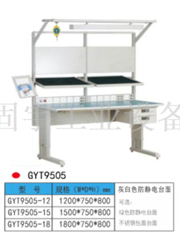 結構 1、防靜電工作臺臺面一般由防靜電三聚氰胺高壓裝飾層壓板(俗稱防靜電防火板)為表面材料與木質材料復合制成。木質材料一般為刨花板,通過嵌入導電體如鋼柱,再通過接地線接地,這樣桌面靜電荷通過接電線順利地泄放到大地。2、也有一些工作臺是不銹鋼的,桌面需要鋪一塊防靜電桌墊,桌墊通過接點線連入大地,達到瀉放靜電的效果。3、防靜電工作臺就是能滿足用戶的普通工作臺功能的基礎上,增加了防靜電功能,也就是如何將靜電瀉放掉!潔凈工作臺 潔凈工作臺是一種層流局部空氣凈化設備,采用可調風量風機系統,在調節風機工作臺后,可使潔凈工作區的風速始終保持在理想范圍內。(可根據客戶要求配備壓力表、可隨時掌握高效過濾器阻力變化情況。 工作臺結構特點 可分為輕型,中型,重型工作臺。1、采用優質鋼板專用模具用輥扎工藝成型,并通過先進的自動化靜電噴涂工藝進行表面處理。 2、根據用戶的承載要求,可選擇不同形狀的桌腳。3、根據用戶要求,工作臺桌面可選擇:高分子復合桌面、防火板桌面、不銹鋼包面、鐵板合成面、櫸木桌面、橡木層壓板左面、防靜電桌面、電木板貼面等 。4、桌上可配照明架、吊架、擱板、方孔掛板、百葉掛板、動力電源插座、電器盒、零件盒掛條等,滿足用戶不同的需求。桌腳上預留安裝孔,方便客戶安裝電源插座。5、桌下可選配各種類型的工具柜,加裝工具柜后,更能合理地利用空間,存放保護工具。可直接在工作桌上加裝臺鉗。滿足用戶裝載物品的需求。6、各種類型的工作桌均采用組合式設計、拆裝組合容易且穩固、耐用。